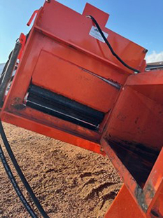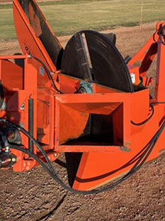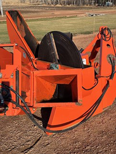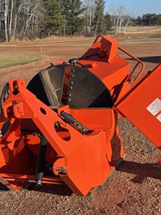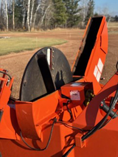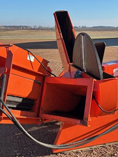 Salsco advertises this machine being capable of chipping trees up to 10” in diameter. You can believe that! This thing is a beast! It requires a minimum of 35 hp at the PTO shaft. I used a Kubota Grand L 6060 tractor that has 53 hp at the PTO shaft. With the Kubota 60 hp tractor powering this machine, it would chew up anything that would fit in the shoot! The hydraulic feeder/conveyor is an option you do NOT want to be without. It makes it so much easier to feed the machine. Occasionally something will get caught and the feeder won’t draw it in. This feeder can be reversed. If something is caught, by reversing the feeder it just pushes the material back out. On a few occasions I had some material get caught in the impeller. There are two ways to access material that is lodged in the impeller. Both are easy to do and take only minutes. The first method is to remove the impeller housing and the second method is the open up the hydraulic feeder which also exposes the impeller. Either method is simple to do and takes only minutes. This is another feature that I really liked; it keeps down time to a minimum!